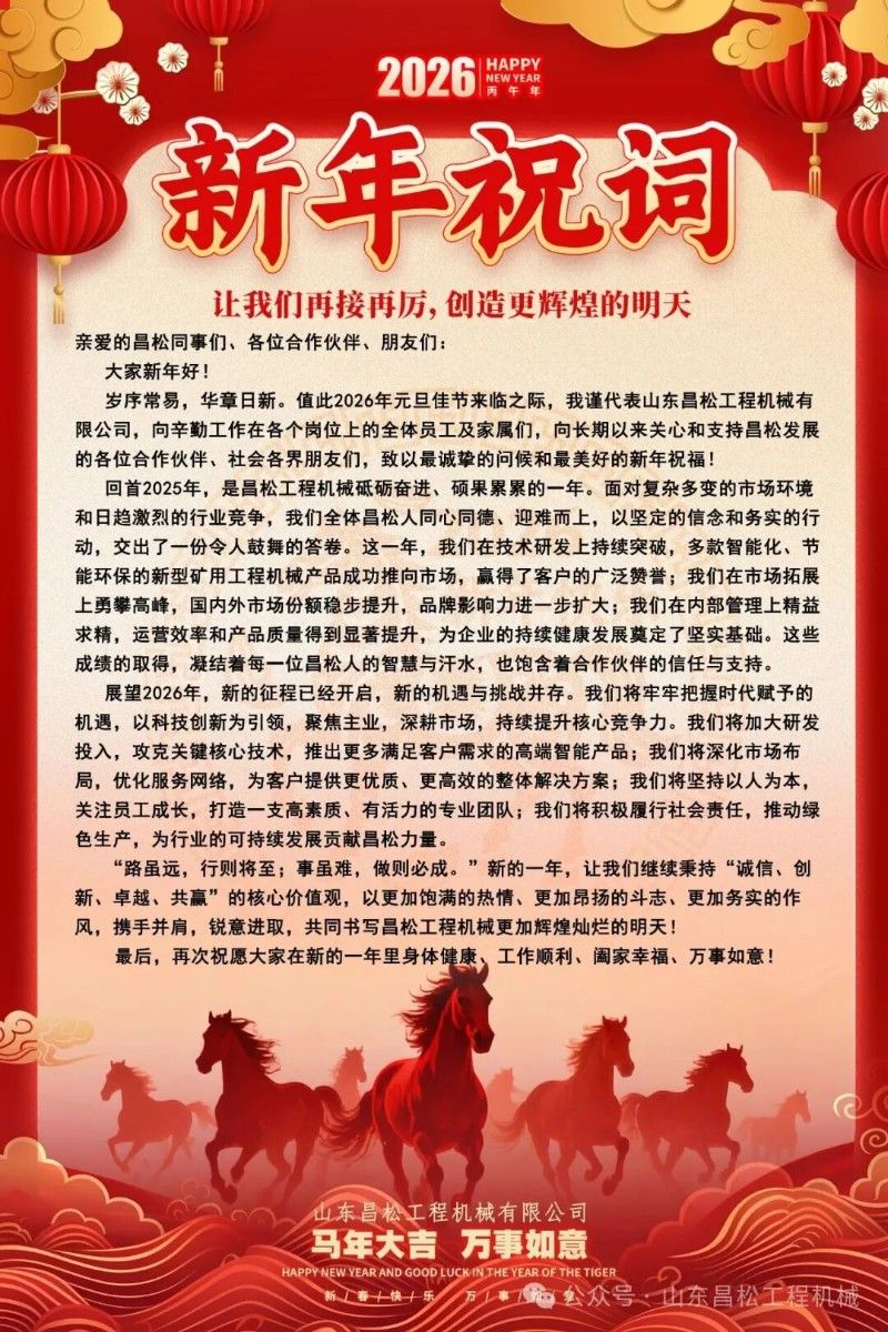 1. ?山東昌松工程機械石總攜全體員工恭祝新老客戶們:2026年馬年行大運,馬到成功?山東昌松工程機械石總攜全體員工恭祝新老客戶們:2026年馬年行大運,馬到成功